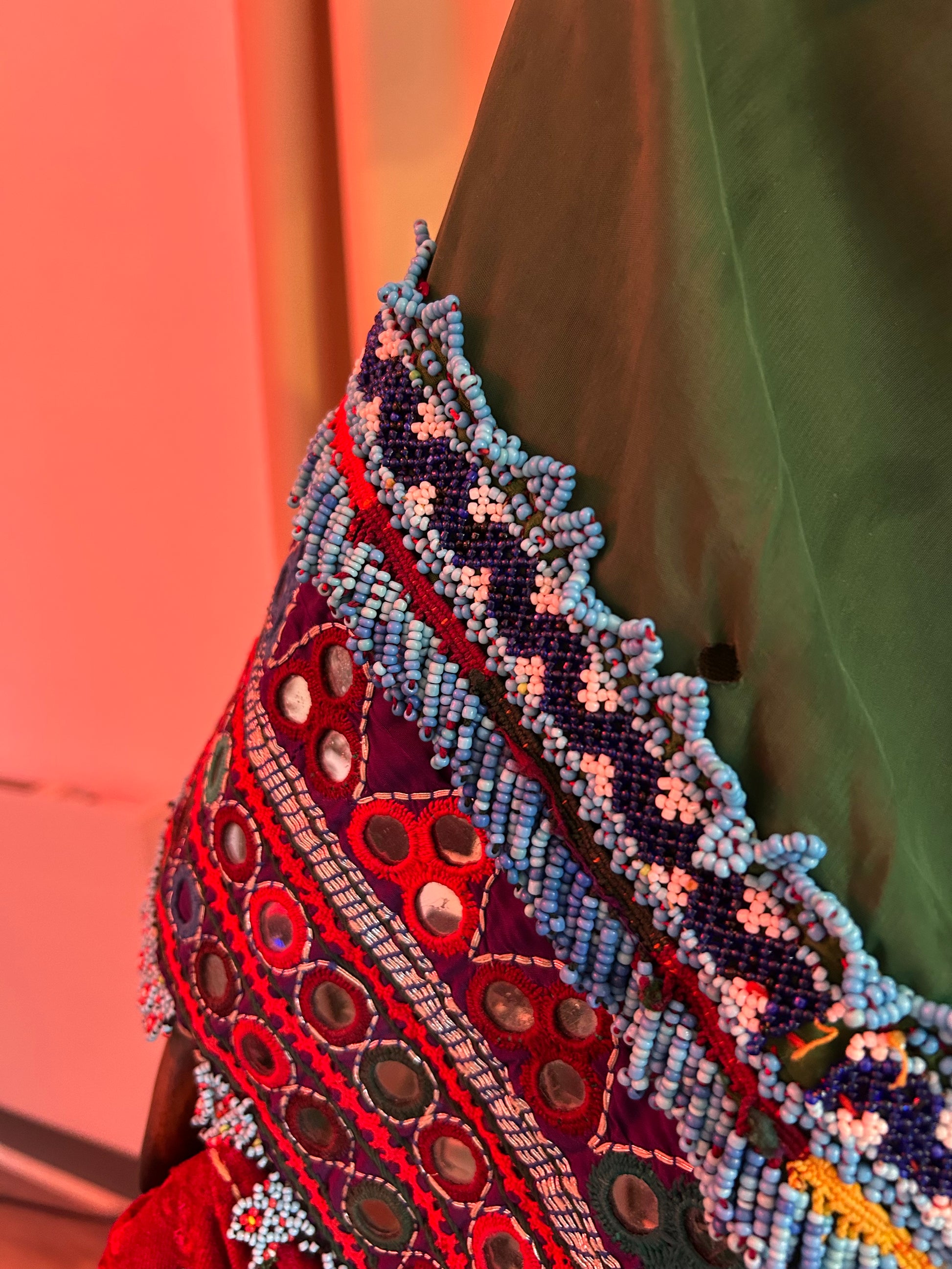 Antique Afghan Hand embroidered dress with embellished beads and mirrors. Velvet skirt with hand embroidery throughout.
