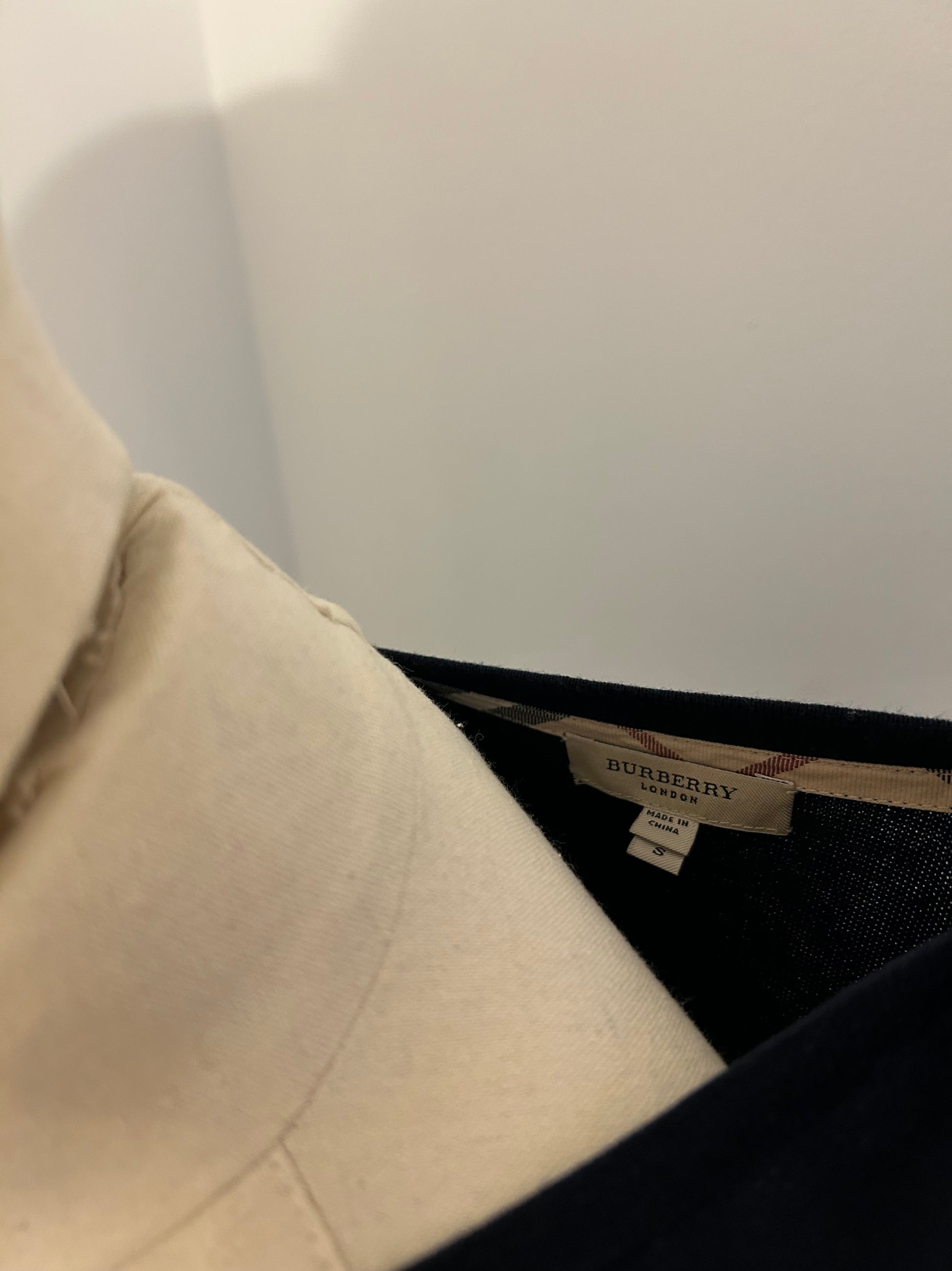 Thin knitted Burberry vest in dark navy with small cream logo on the side