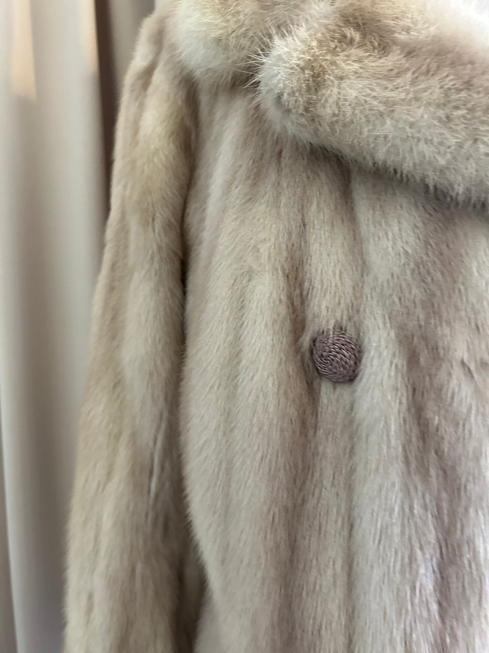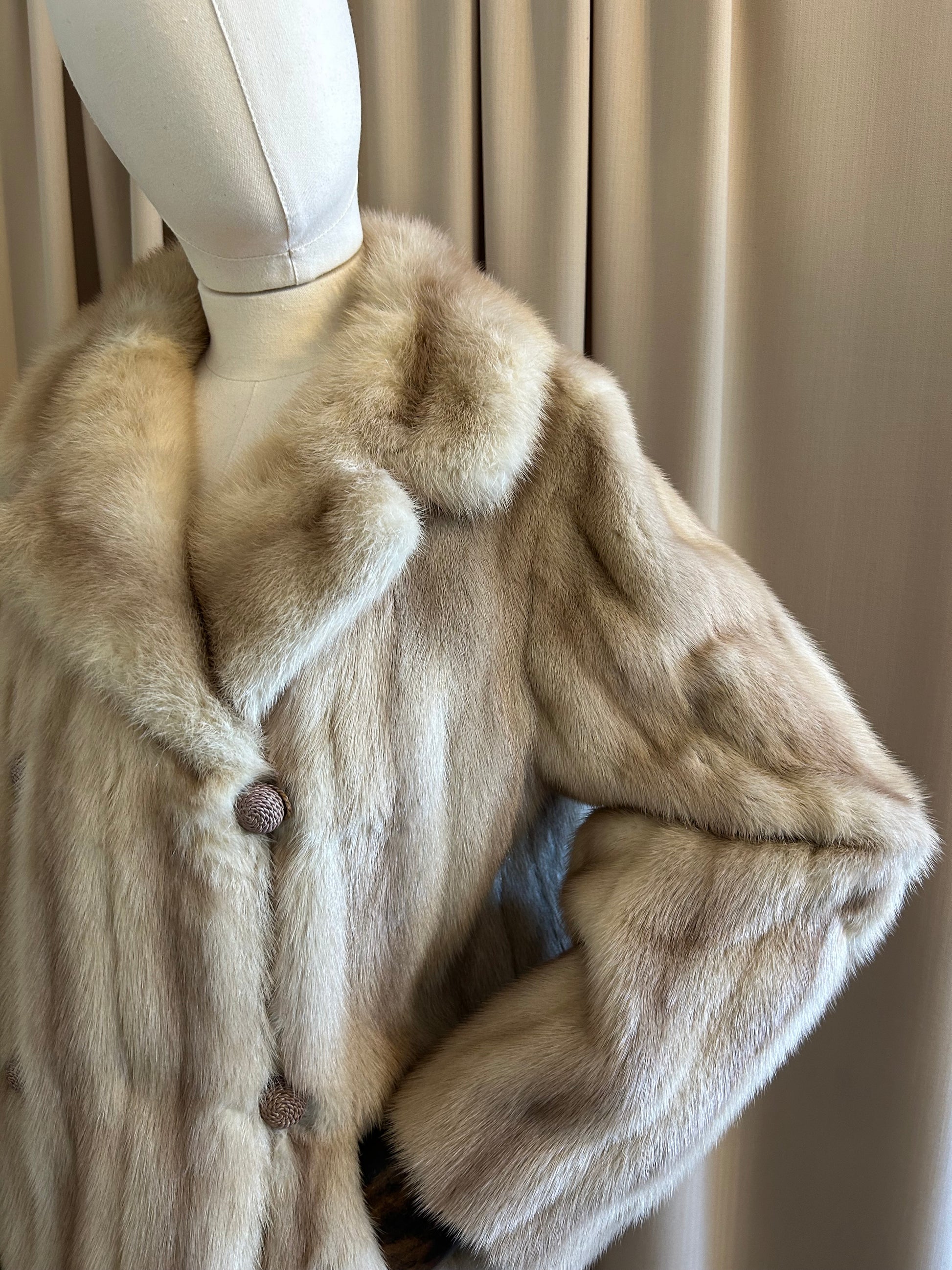 Short beige light brown mink fur jacket with button closure by Calman Links London