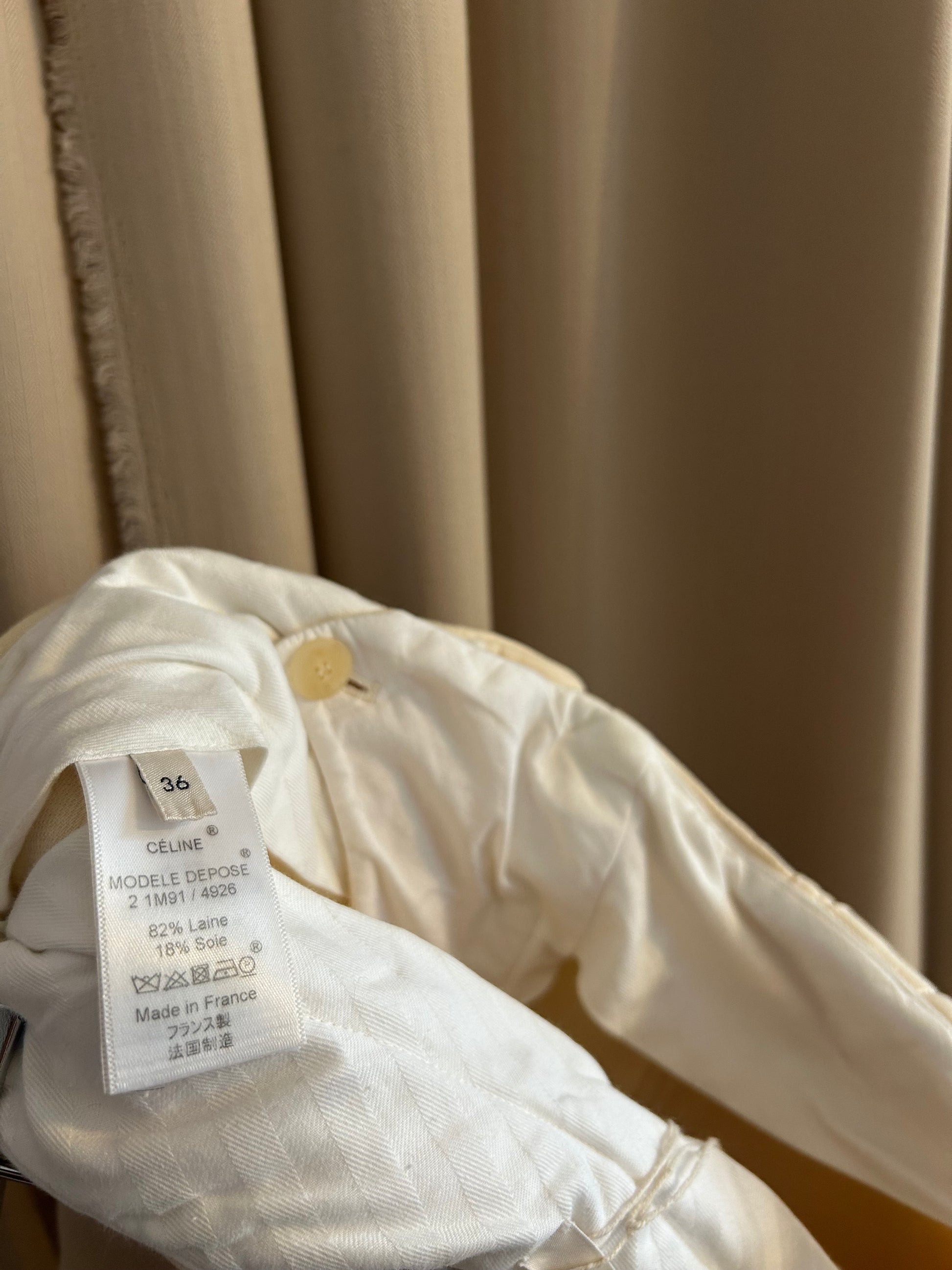 Vintage Celine chalk white trousers in thick silk and wool blend