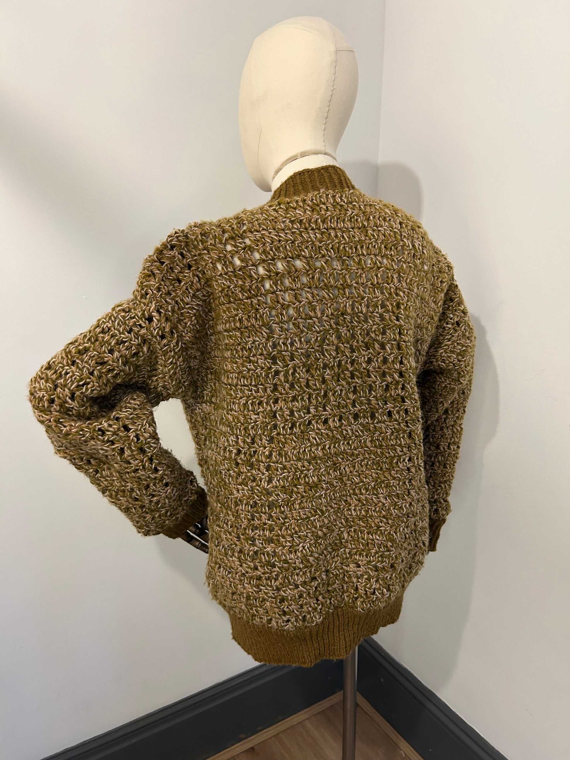 Chunky hand knitted Cardigan with gold buttons. Four pockets added on