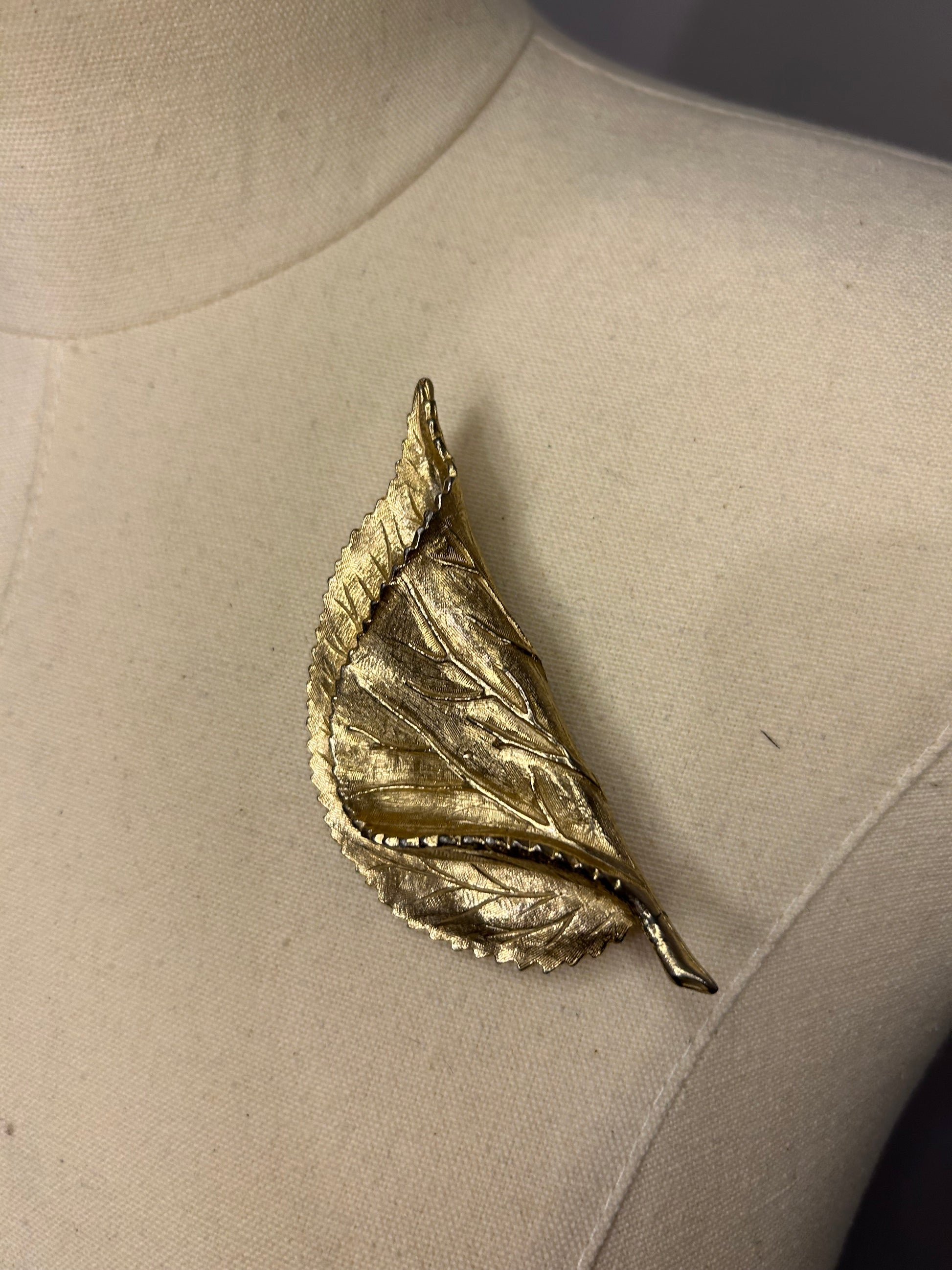 Gold tone late leaf brooch with small issue on the stem as shown in photographs.