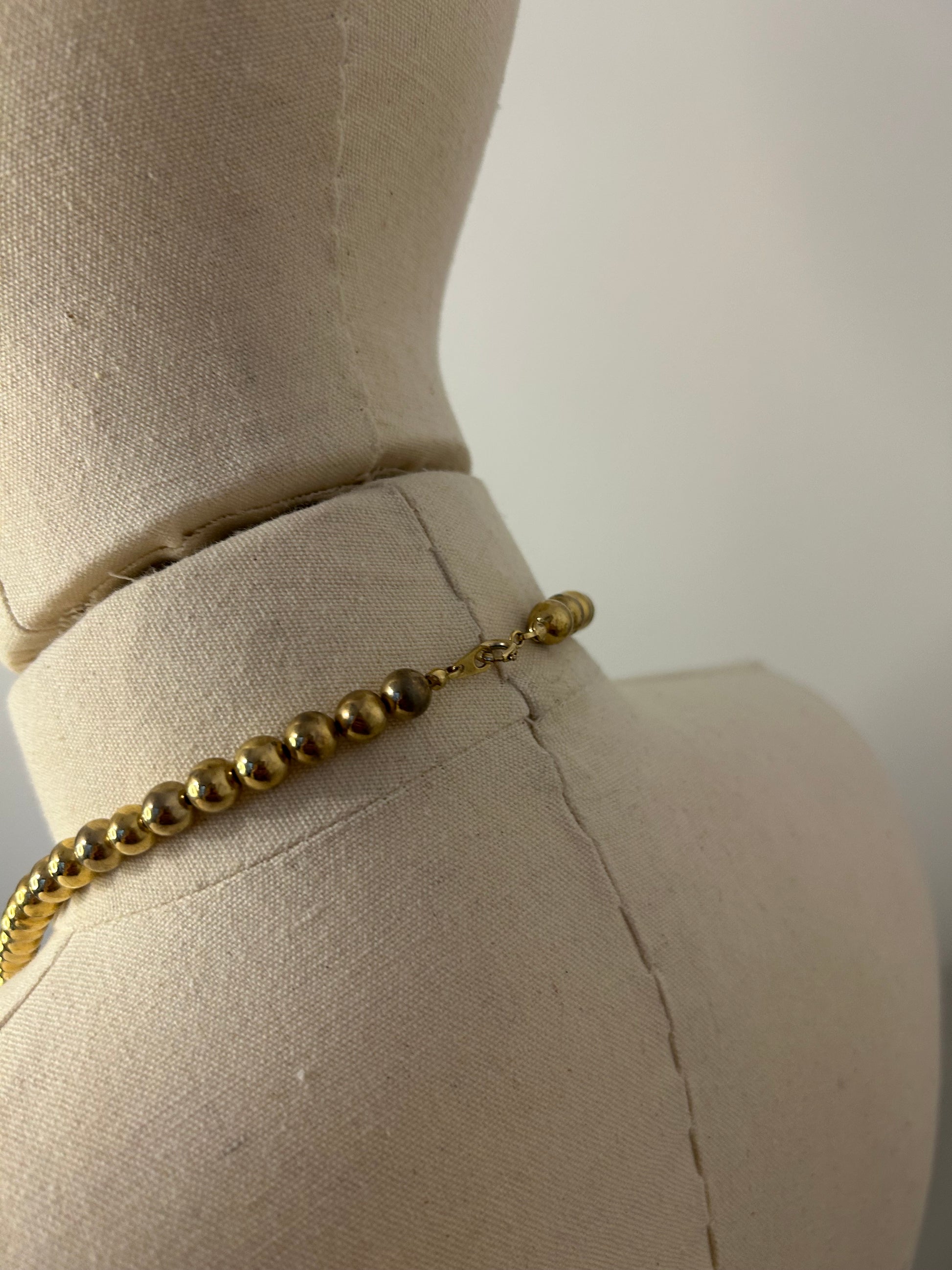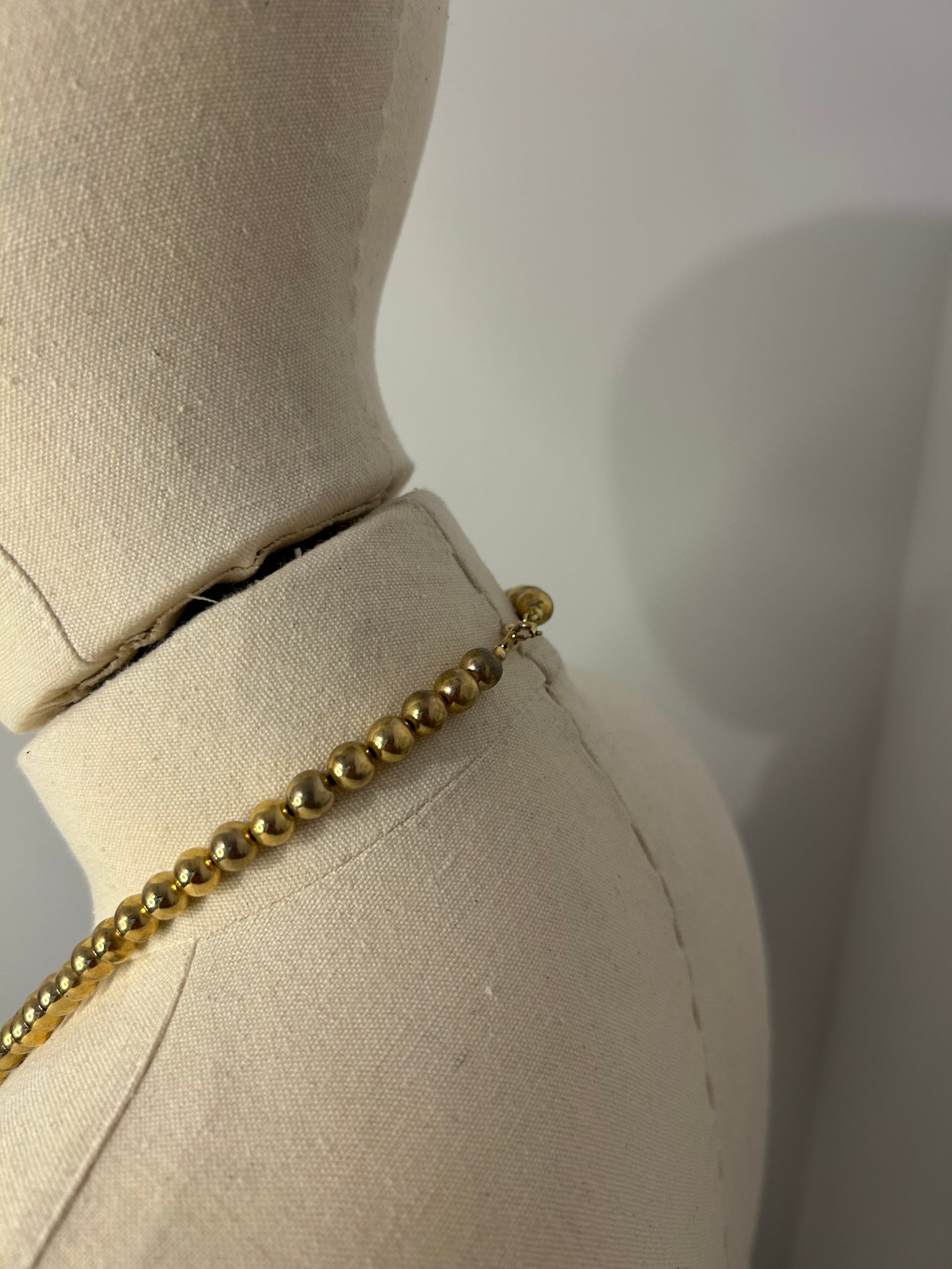 Long in length and graduating sized metal gold tone balls. Unsigned. Slight discolouration to the back balls