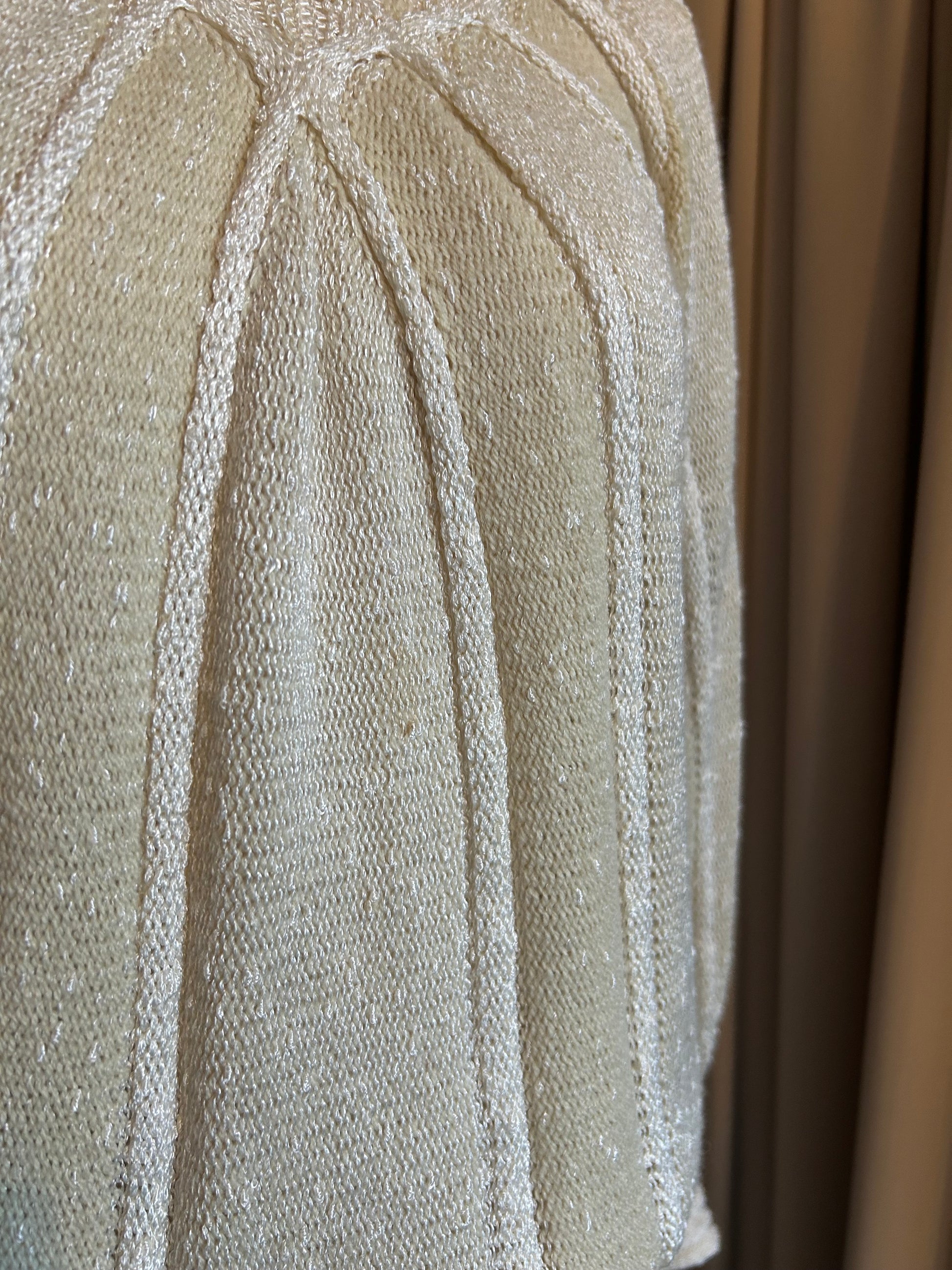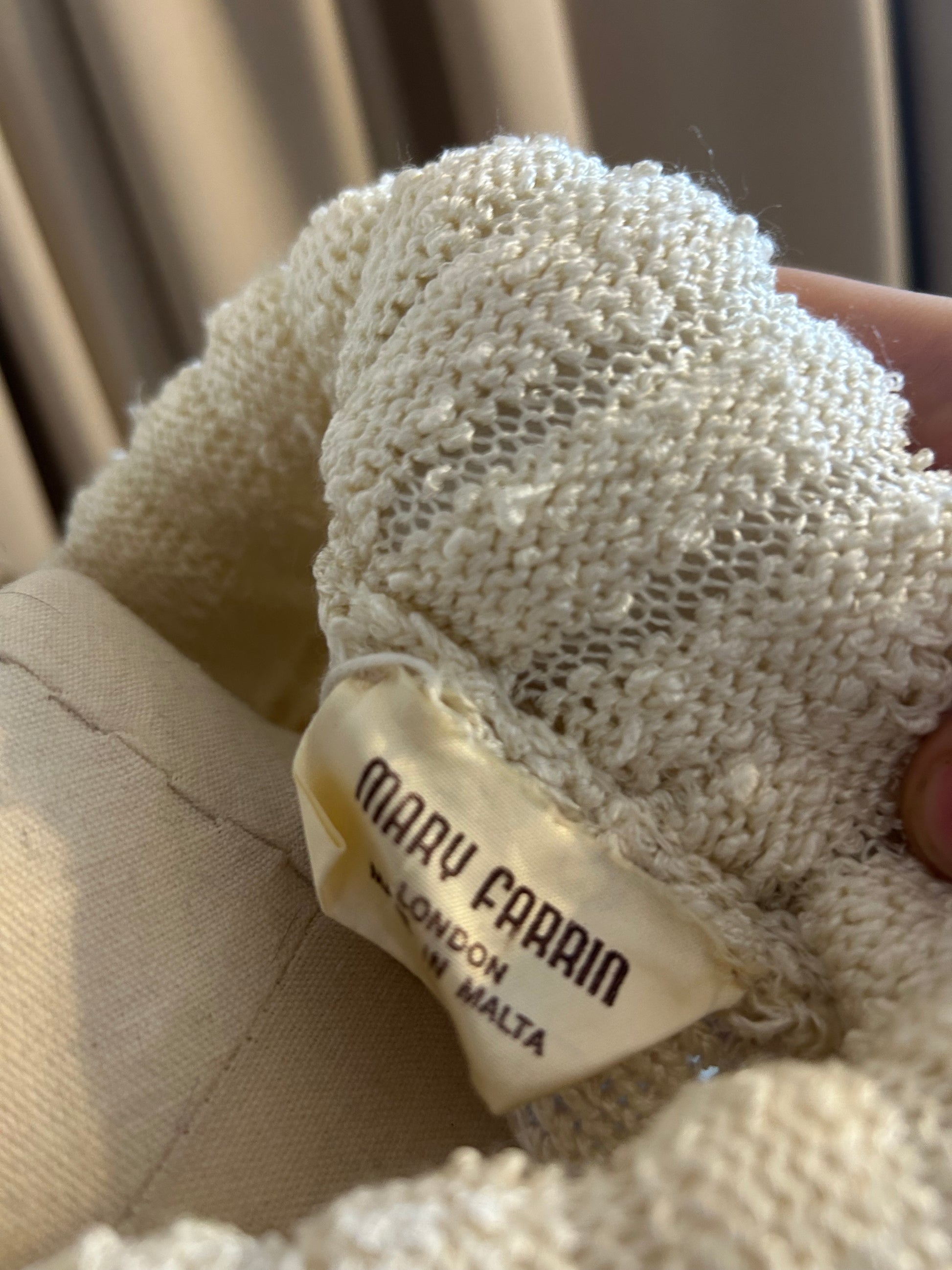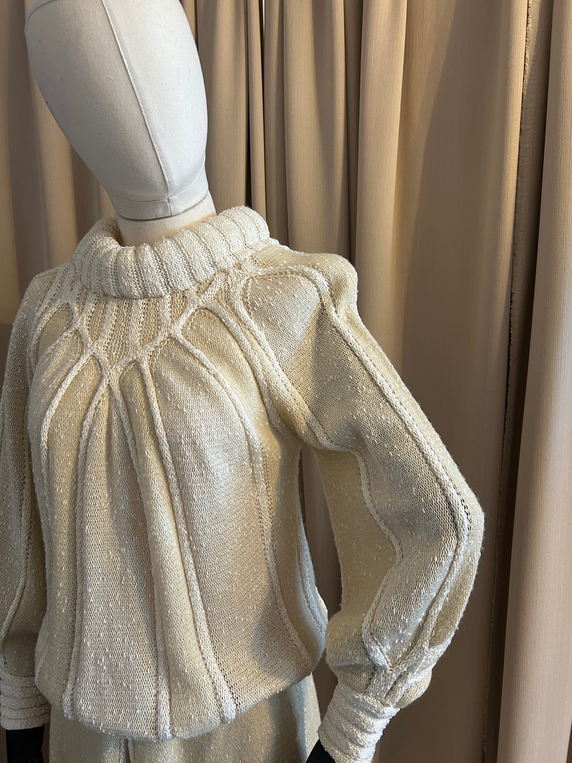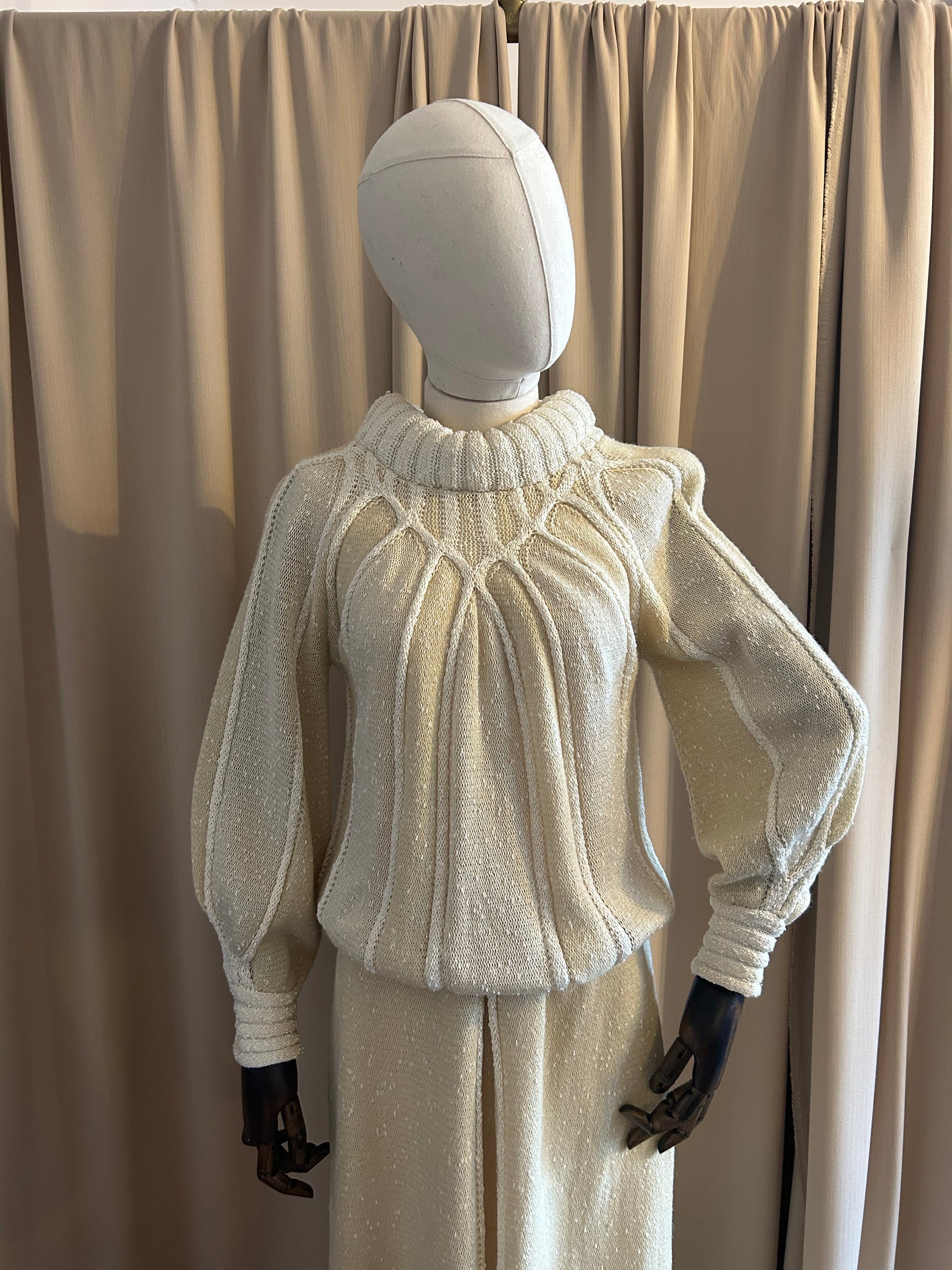 Cream knitted Mary farrin two piece skirt and jumper set, iconic design