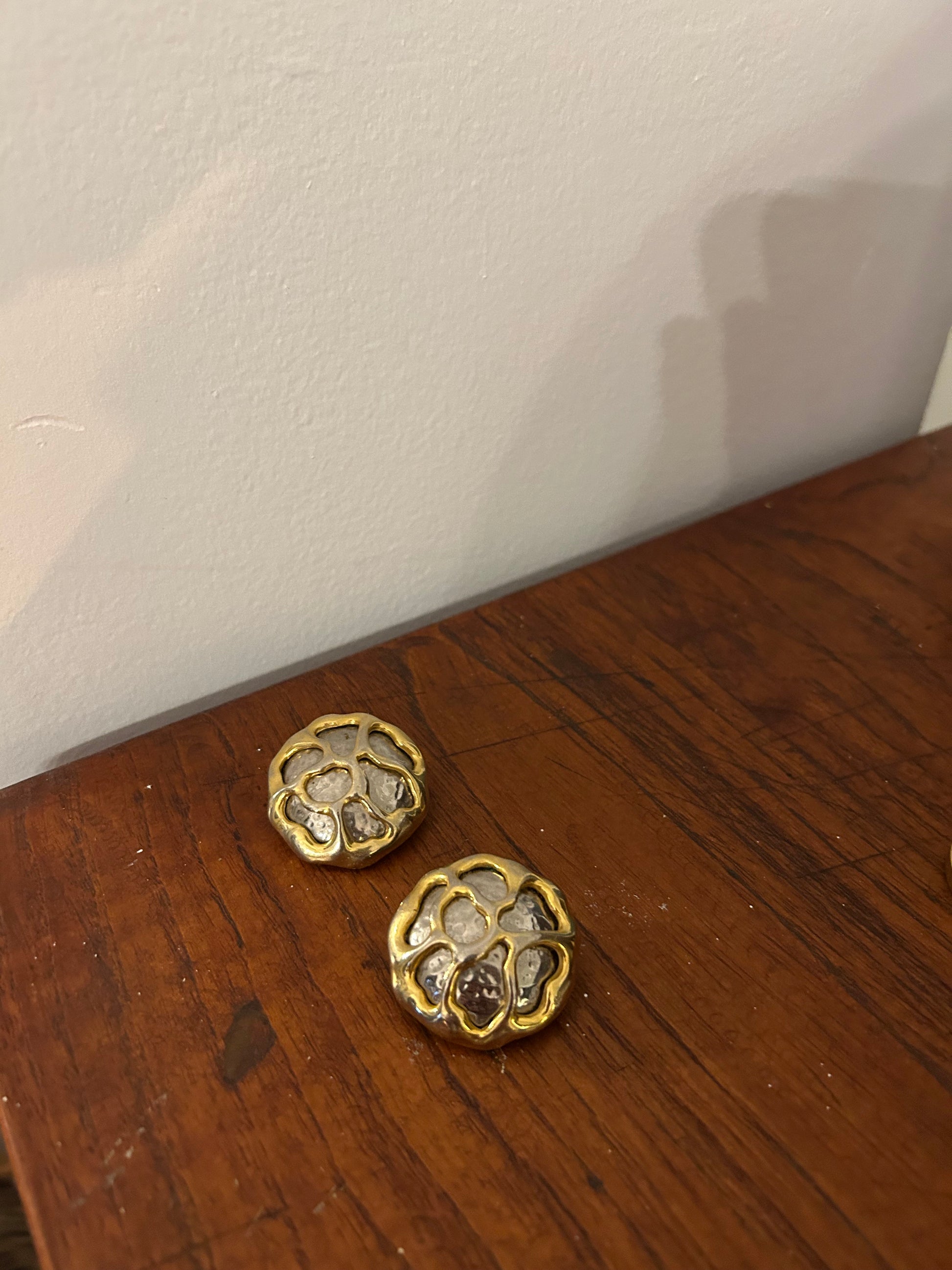 Mixed Metal Fluid Clip On Earrings