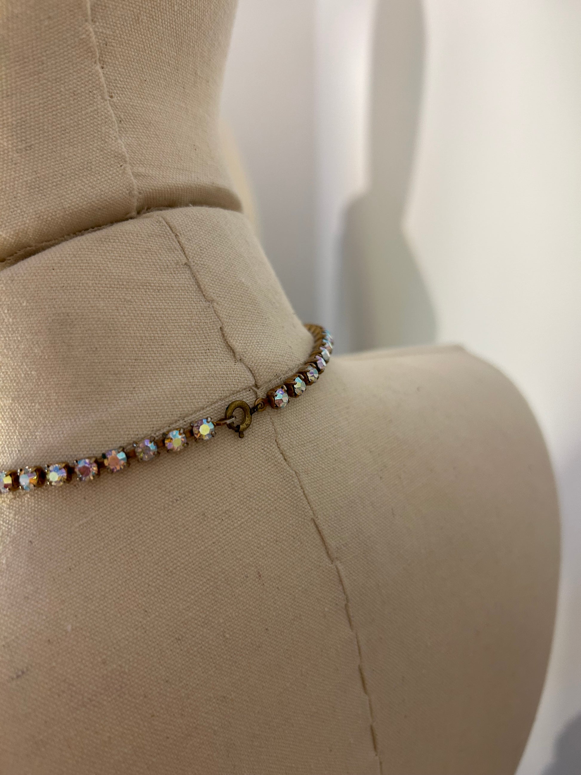 Simple rhinestone necklace with a square detailing made from diamanté stones