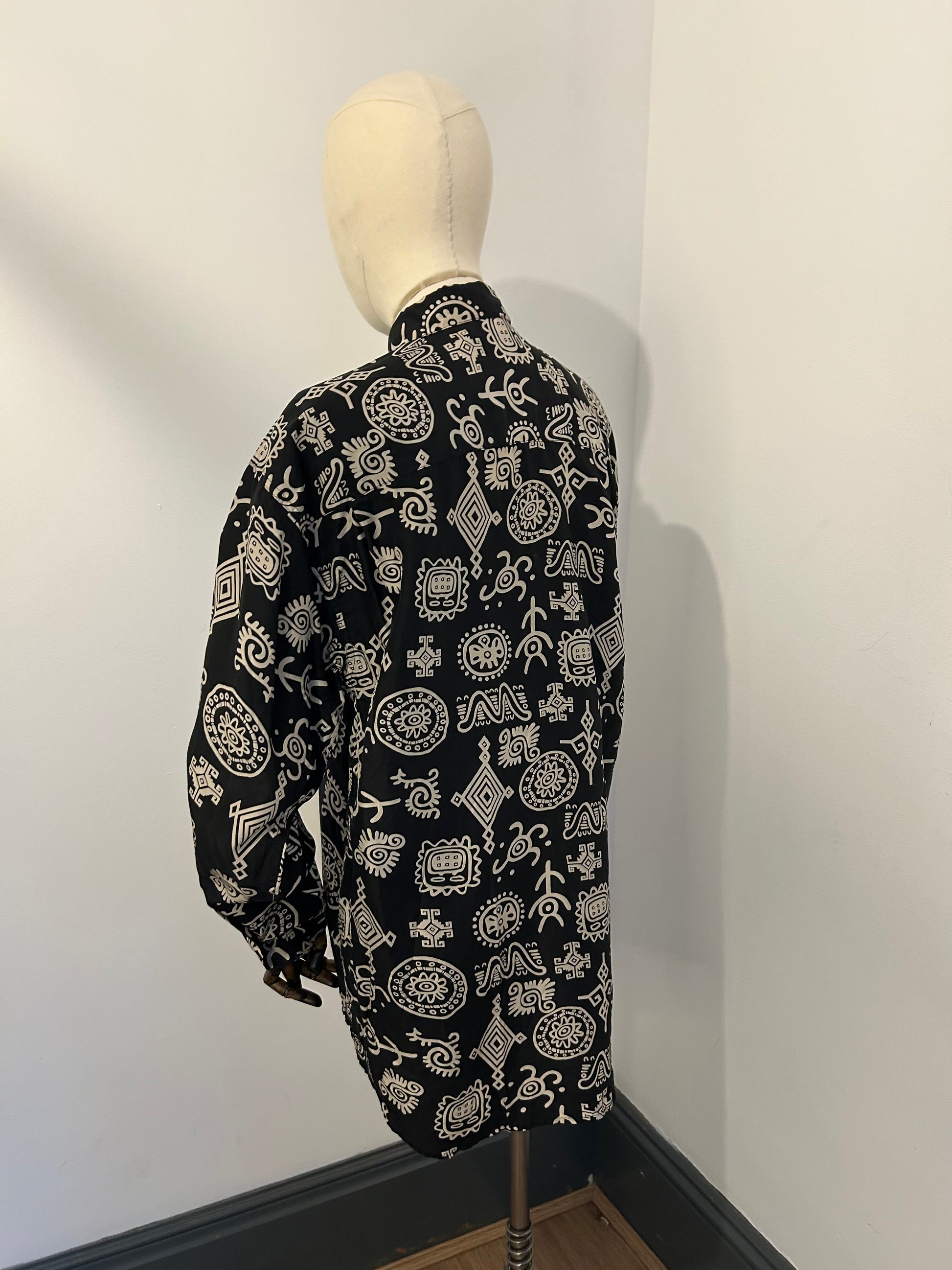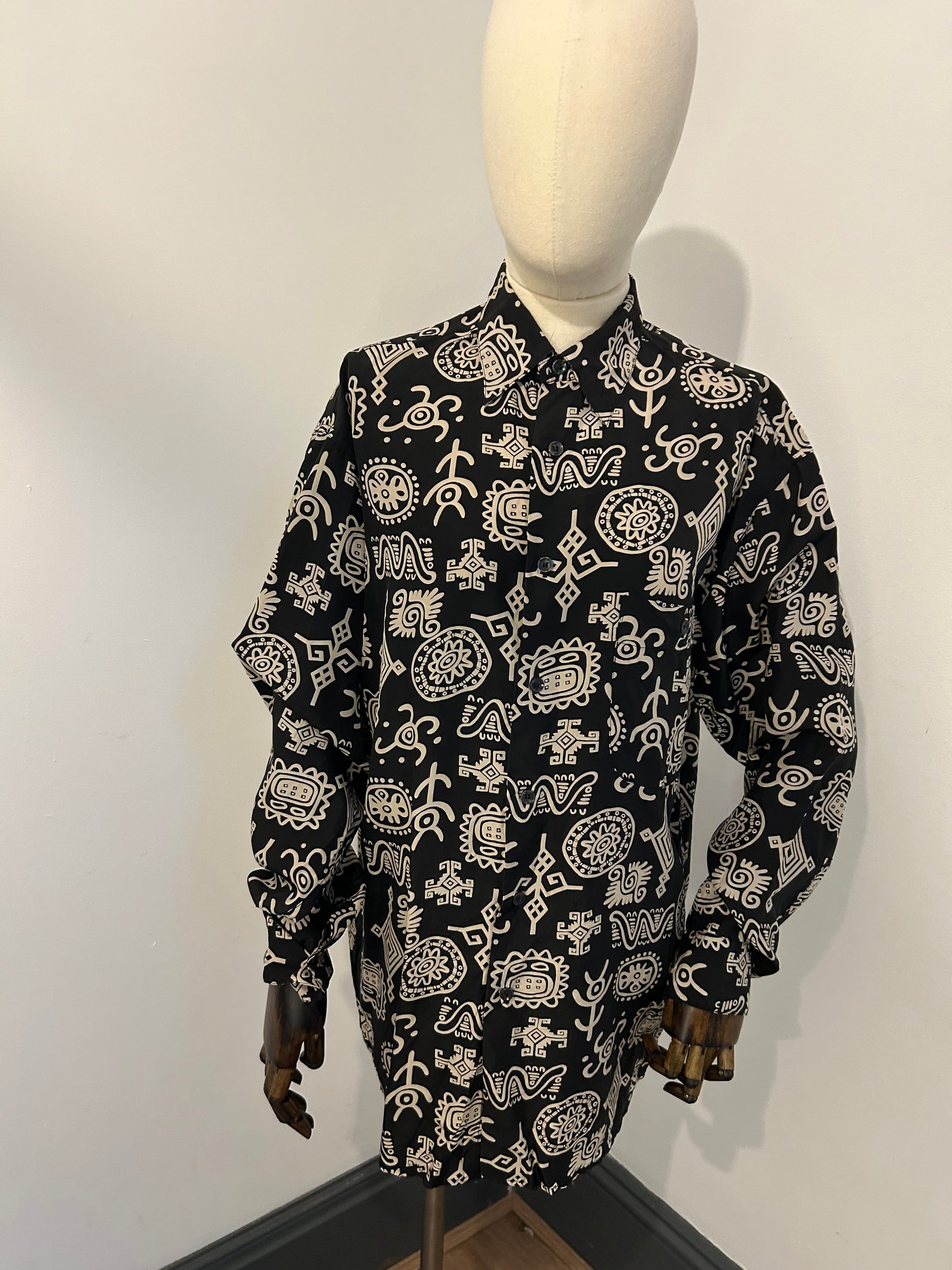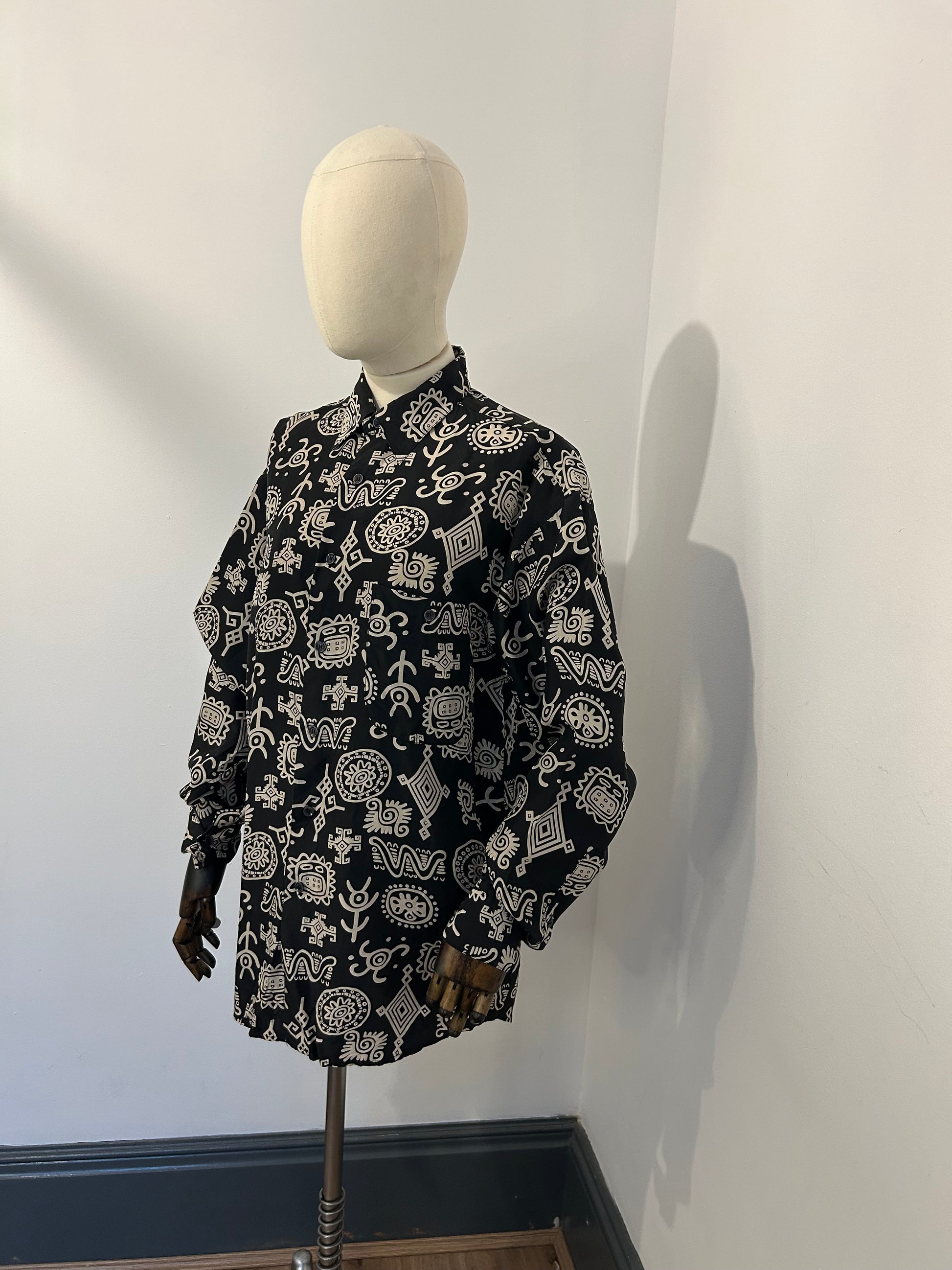 90s silk Aztec shirt from st Michael, oversized slouchy fit
