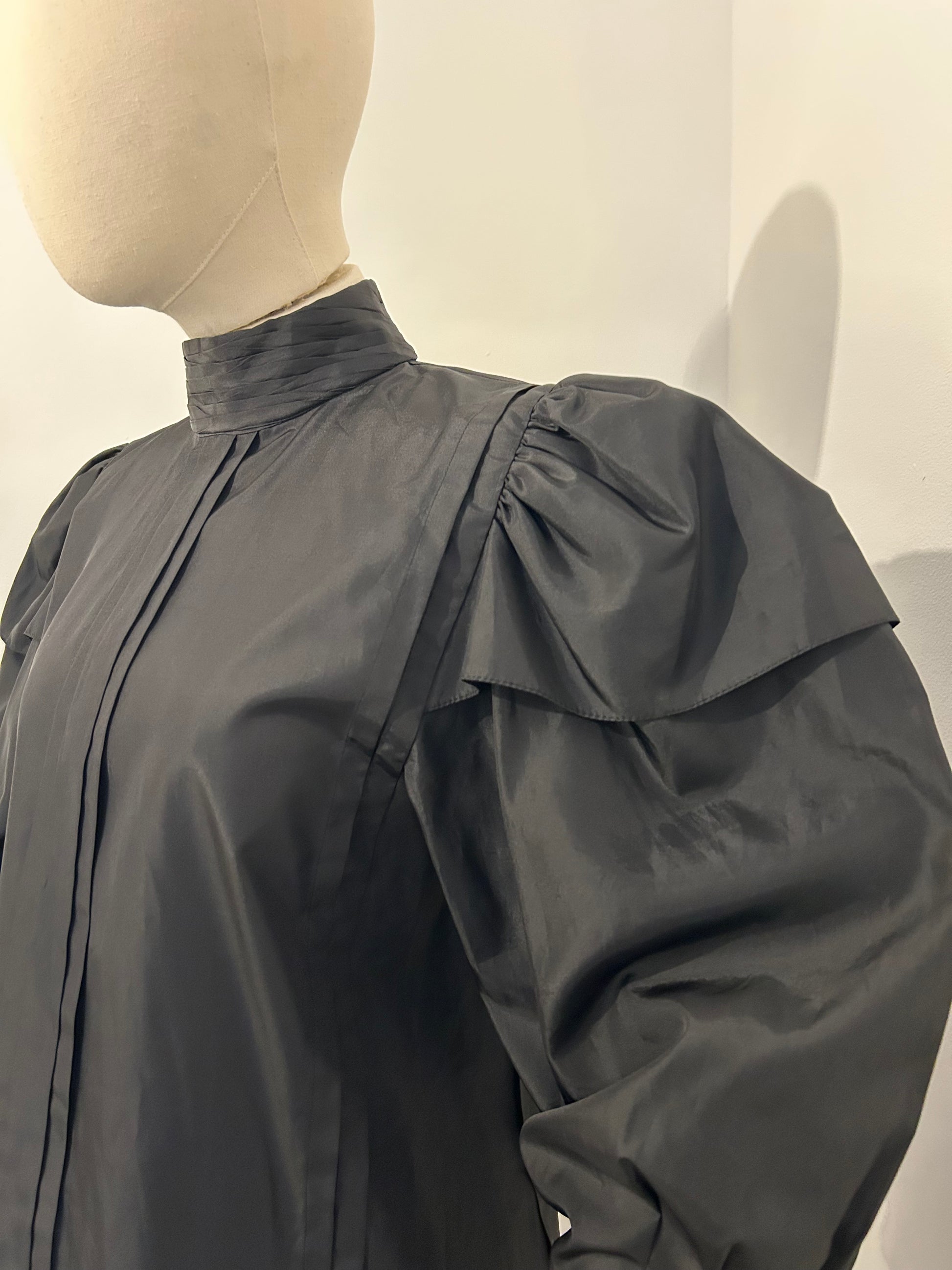 Statement sleeve puff sleeve blouse with pleating details and back buttons. High neck for extra drama.