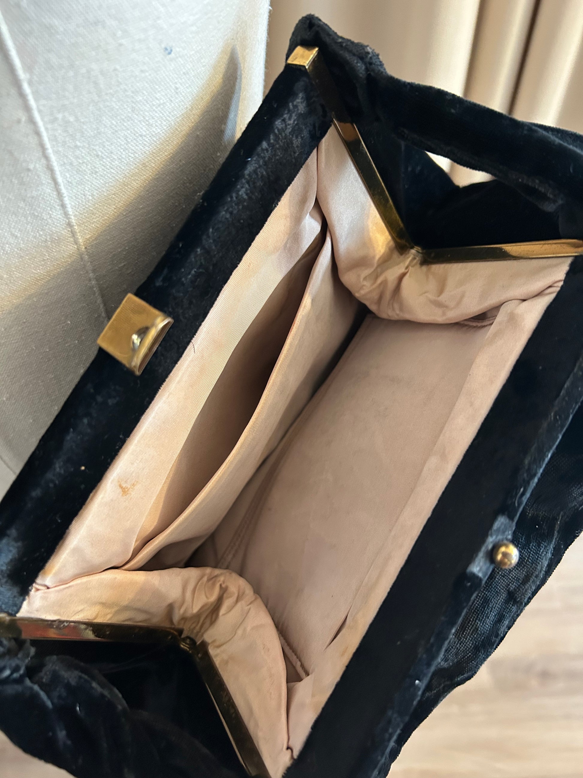 Super cute antique velvet bag similar to a kiss lock closure. Puffy velvet handle