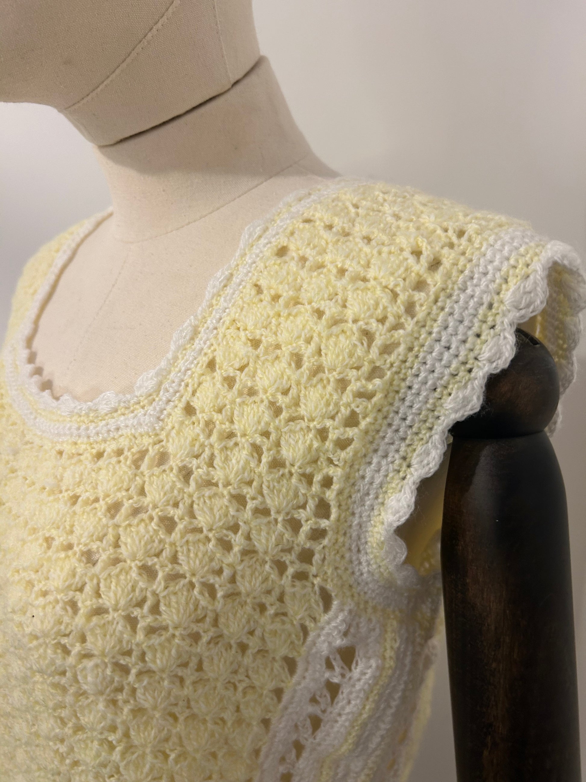 Hand crochet lemon yellow and white tank top