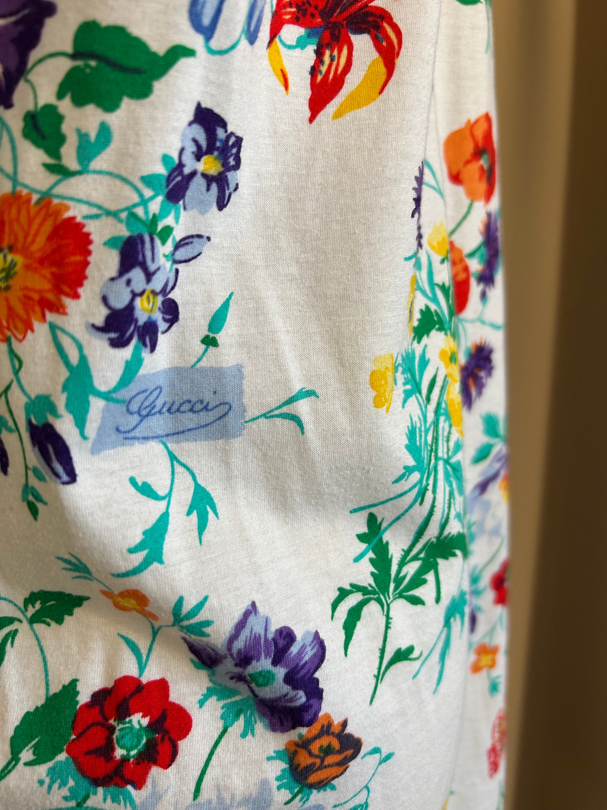 Vintage Gucci floral all over print shirt in cotton, gucci logo mixed in subtly. Labelled size small